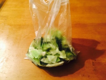 ③それをナイロン袋に入れて、梅肉(梅干し3個分)塩昆布(5本の指で軽くつまんだくらい)