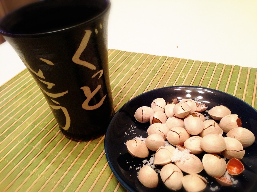 という事で、昨日はちょっと寒かったので食後に焼酎のお湯割りを飲みながら銀杏食べました。