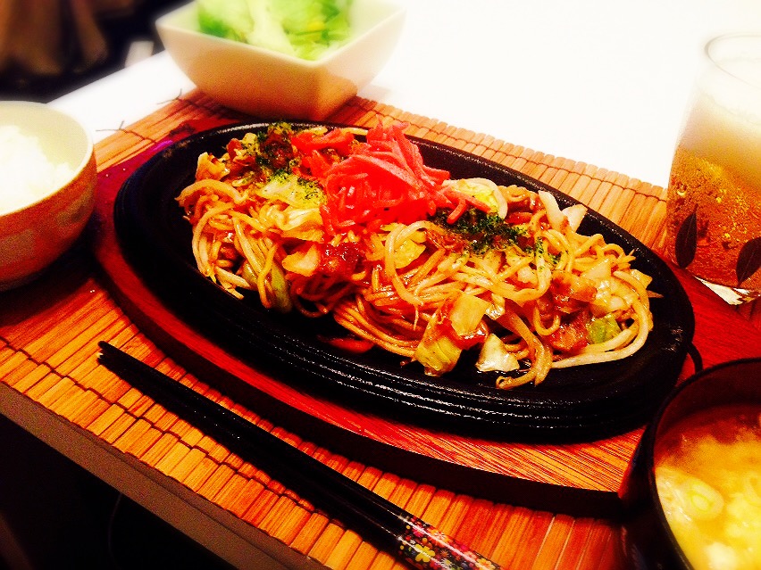 鉄板焼きそば(こうすることでただの焼きそばが美味しく見える)